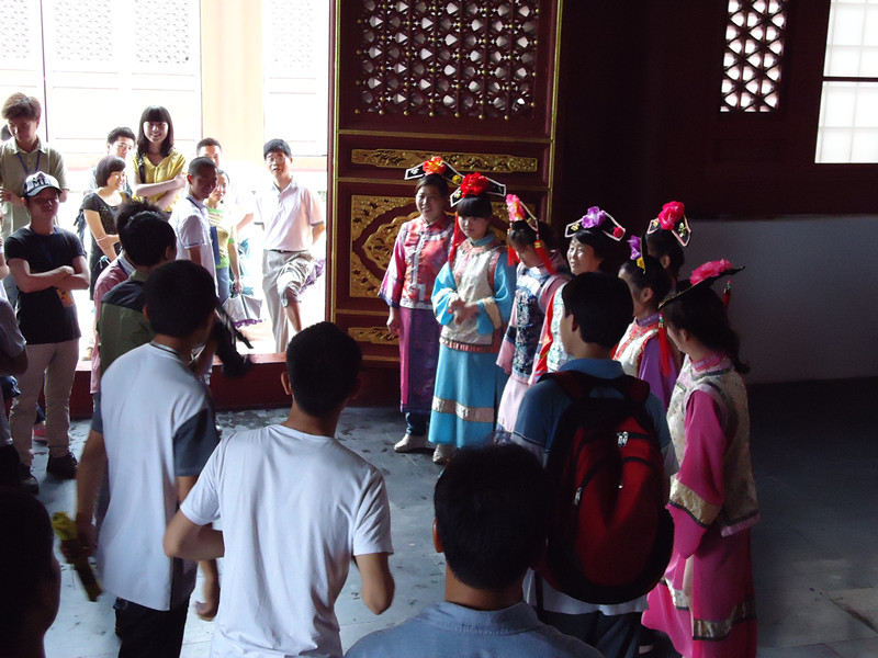 橫店影視城《格格出嫁》劇組之皇上、皇后、大內(nèi)總管合影 橫店影視城《格格出嫁》劇組之格格、才子候場中